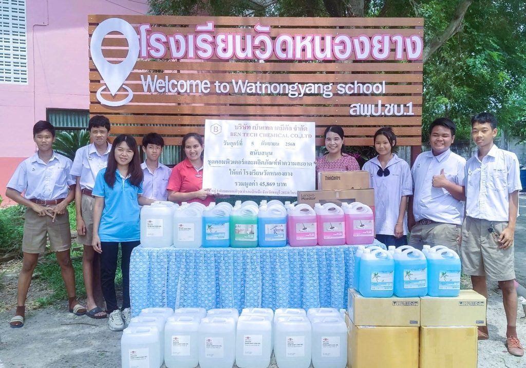 On September 5, 2025, Ben Tech Chemical Co., Ltd. donated computer equipment together with cleaning and hygiene products to Wat Nong Yang School, Nong Bon Daeng District, Chonburi Province, in order to support teaching and learning as well as to promote good hygiene and a healthy environment for students and school personnel.