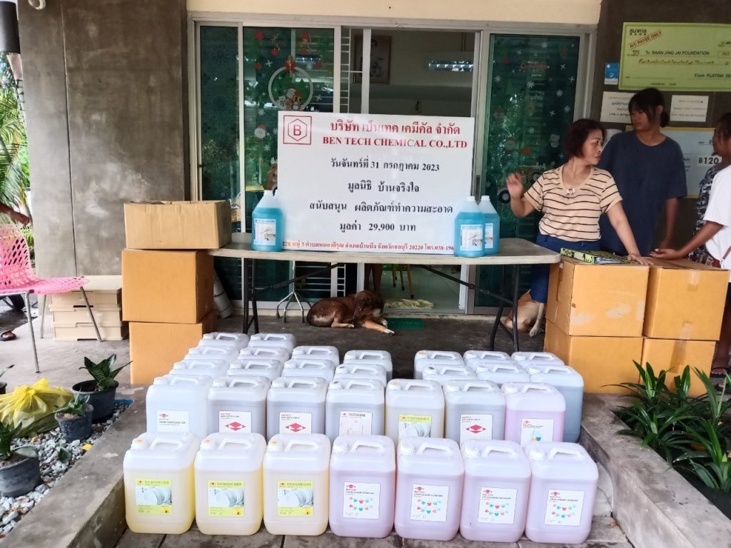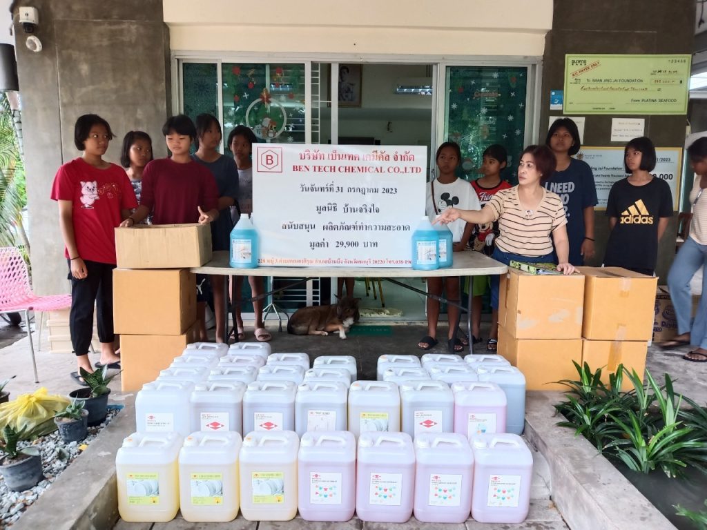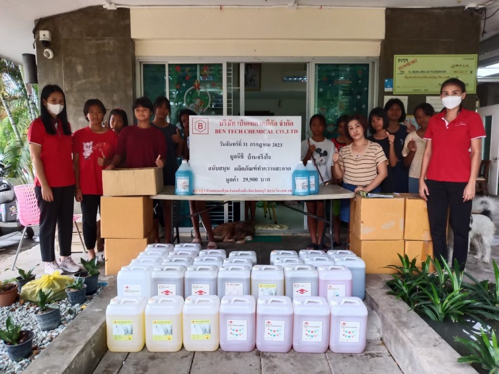 July 31, 2023, Bentech Chemical Co., Ltd., Chonburi plant donate cleaning products for the children living in Ban Jingjai Foundation. Bentech Chemical Co., Ltd. is very glad to be a part of the great social work.